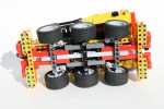 The boom was relatively simple; two stage, and 23 studs long. The outside was simple and straightforward, meant to be sturdy and strong. The pivot was at the rear on top of the winch, and the elevation ram was connected forward under the front of the boom. There was a simple worm gear under the front that would drive a set of gear racks, to drive the inner boom. The inner boom would hold the final boom which was only a series of plates. Each stage was connect by a two cables to make sure all the booms moved together in unison. It worked well, even under load, as you can see in the video.