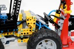 After packing, repacking, and packing again, all the features we set. Then all the cabling and hosing were placed. No easy task, as I was running out of space, and 25 or so hoses, and 10 cables take up a lot of room. I added some comfort features to the cable, including a (half) chair and a roll cage. And so Mr. Technic could get in, a little step. Then a lot of paneling for the rear, including some access doors on the rear, and the model was done. Here it is in action.