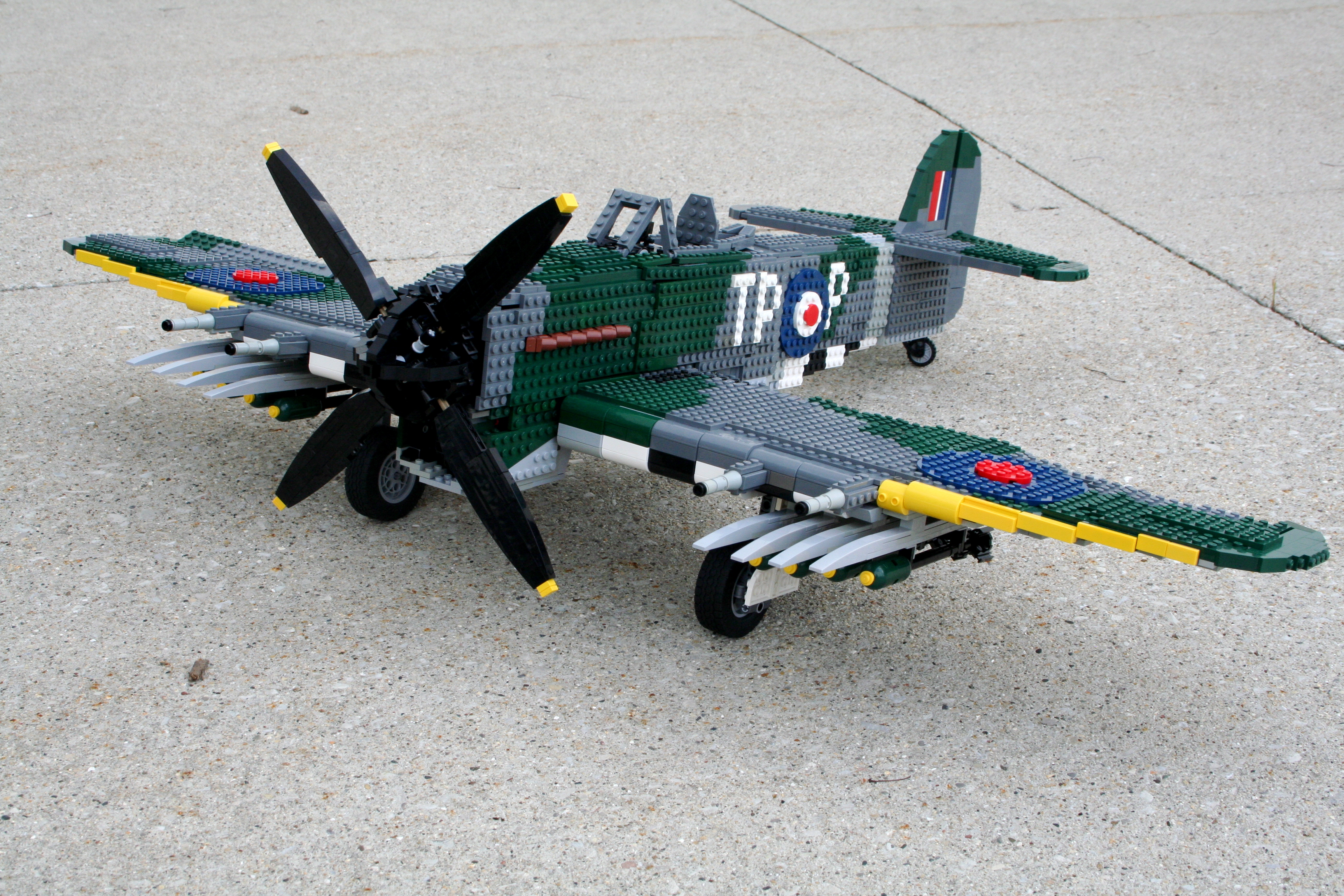 With this in mind, I wanted to develop what I have learned, but allow myself the ability to take a large scale aircraft to the next level. I wanted to improve the function of the control surfaces, design my own propellor, use four Power Function channels, and use the boatload of Dark Green parts that I had recently acquired. I considered a number of airplanes, including doing the FW-190 again, but I finally settled on the Typhoon. Time to get building.
