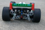 I decided the car should have a simple engine, four wheel suspension, and working steering. Recently, there was a good design that gave me an idea about how to do a smaller scale driveline for the car. I worked on the rear first, and once I had the suspension setup, I added a small flat four engine place directly on the bottom of the car. This would be the basis for the rear of the chassis.