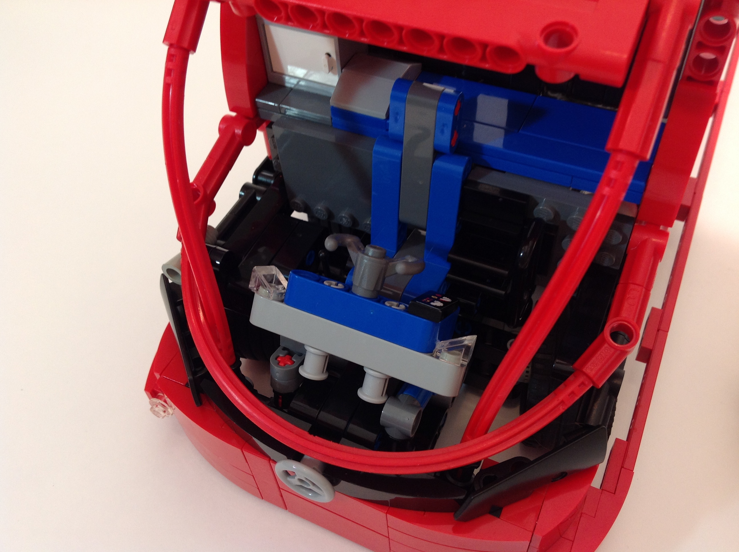 Driver’s seat, steering wheel, video mirrors, bed, and storage. ThemoCommLink is on the left above the bumper.