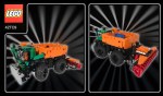 I first made a pile of all the parts used for the truck while it was still built, and made a first draft of the tractor. Based on the parts of the Snowblower, the tractor would have four wheels, a 2 cylinder engine, and something with a whole bunch of 3×3 round, red, liftarms. I first modeled it after a John Deere 7R series, but realized this would leave me with too many left over parts. I then tried modeling it after a Claas Saddletrac. This seemed to be a better fit. I then took apart the Snowblower, making instructions as I went. I then used these parts to make the official model B. Over the course of a week, I made many revisions.