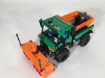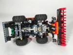 Pretty early, I settled on 17x17x34 studs for the Snowblower. I challenged myself to include steering, a working blower, and a working salt spreader. I build the basics of the blower implement right away, complete with rotation coming from the truck drive. On the rear, I added an implement lift using a worm gear setup, and a quick link to the truck . Next, I worked on the chassis of the truck. I added portal axles, because I could not get the 5L wheel axles to say connected to the differential. This also helped to clear the front PTO from the steering function, which was linked directly to a HOG gear on top of the cabin. The salt spreader needed a take-off gear for the conveyor belt, and the discharge plate would be driven separately from the rear differential. The mechanics were set. I then worked on the cab. I made sure the cab, the blower, and the spreader could be easily removed by removing up to four pins for each. It’s a fun modular function that allow for other attachments.