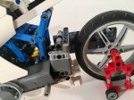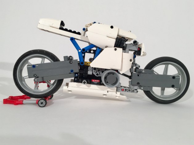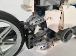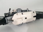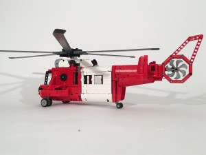 The body work came together quickly with the exception of the rear doors. I wanted to add two sliding doors with windows, and based on the color scheme of the helicopter, they had a to be white. After six drafts, I finally came up with a solution that was doable. They are not perfect, but all the other designs had windows that were comically small, or too low in on the body. Unfortunate, the design calls for six white rare parts. The rest of the bodywork turned out well. The nose, while a little clunky, looked how I wanted. The top area looked good with the three engine exhausts, and the six bladed rotor, while overdone, fit perfectly. Oh, and with clever pin placement, you can fold the rotor back towards the tail. The tail looked sharp with the ducted fan. The vertical stabilizer looked empty, but that’s a problem for all LEGO Technic aircraft with the exception of 42040 (maybe).