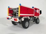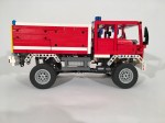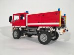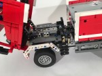 When I found Horcik’s fun little Fire Truck, I was immediately enamored with the look of the truck. After deciding I was going to make it, I started looking for additional features to add to the excellent design. After finding some great ideas of a Renault version (2), I decided to get to work. The truck started with a 4×4 driveline and an I-4 engine. I used a simple live axle setup with 9l steering links to keep the sway movement in check, and both axles used a Panhard link. The steering was actuated with another 9l steering link, rather than the more common rack and pinion setup. This allowed for a lower engine mount, and something a little different in the design. The steering can be moved by both lights on the roof of the cab.