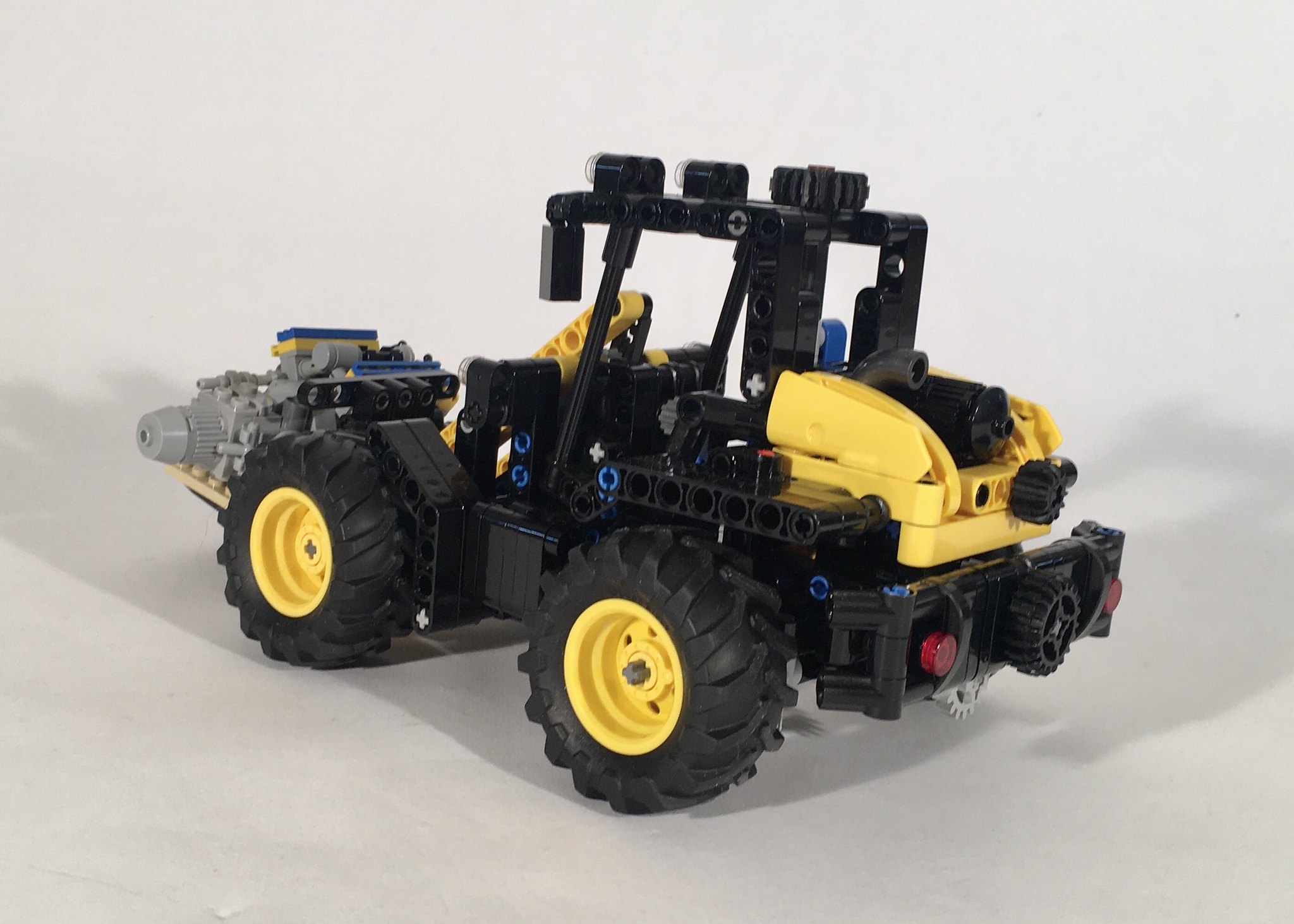 Every once and a while I return to an old LEGO set, and try to modify and improve what was offered by The Lego Group when the set was released. I like to harken back to some of these influential sets because it helps me take stock of all the improvements that have happened in parts and design in LEGO Technic. 8850 was one of the first sets to use the, then new, cylinder and piston parts that have been used ever since. The set also had a driver, steering, and a robust design. When I set to work on this MOD, I placed the following constraints: keep the size, keep the engine, keep the steering, add suspension, update the bodywork, and keep the driver. Make it yellow.