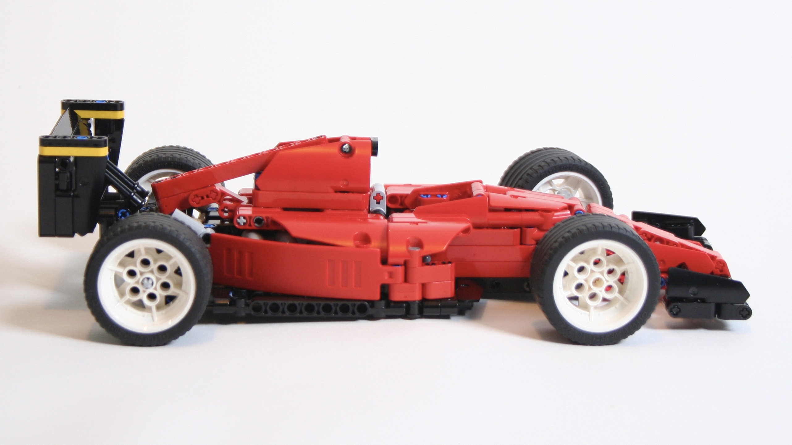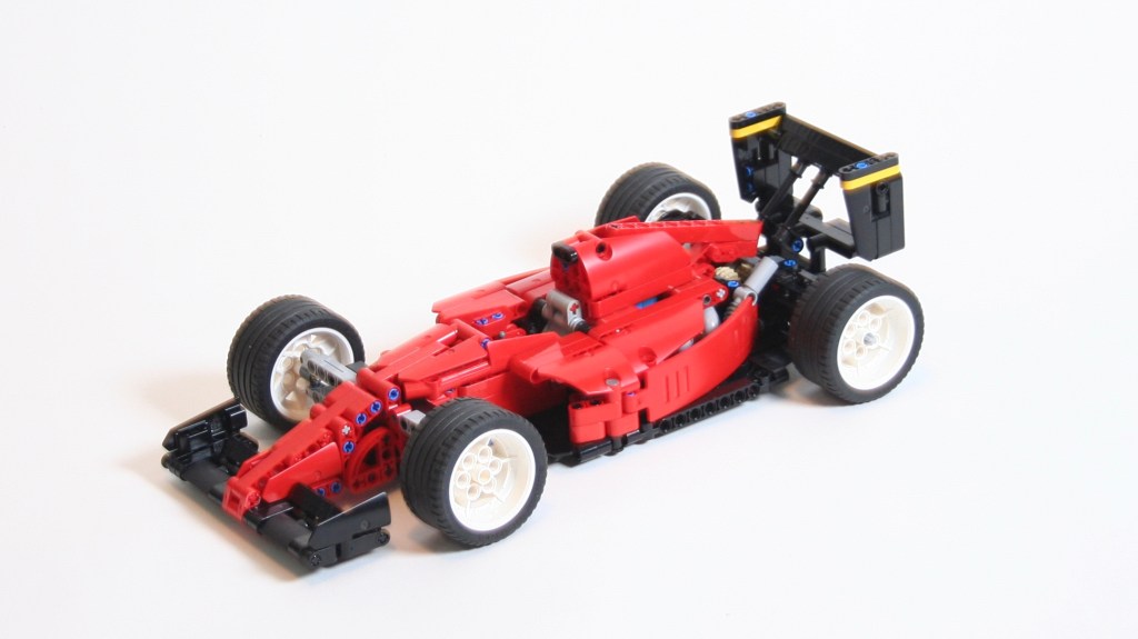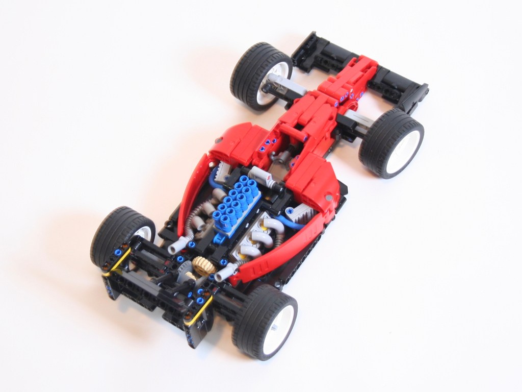 Keeping the front steering was simple, but fitting it into the narrow nose was a little bit of a trick. The final result is not too interesting but works well, and allows for a removable nose. A simple rear wing was added as well, and can be easily removed.