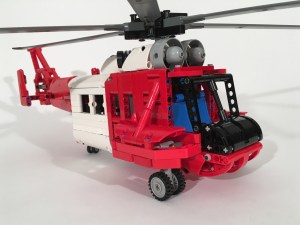 The helicopter worked great, though a clutch for the gearbox would have been nice. I was pleased with the bodywork of the helicopter, and the colors worked well; maybe grey and orange would be great on a rebuild. I would have lived to have a cleaner design for the wheel pods, but it worked well enough. It was a good swooshable design, as I found playing with the helicopter extensively. Now I need to make a scale Coast Guard ship on which the helicopter can land. Maybe next year.