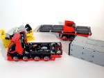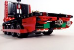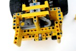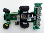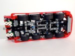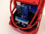 Behind the turret are two PF L motors mounted transversely side by side. They drive a 1:1 gearbox which connect directly to each rear drive sprocket. The IR receivers are placed above the gearbox. For those keeping score at home, the internals are (f to r) the battery box, the turret motors, the turret mechanics, the drive motors, and finally the IR receivers.