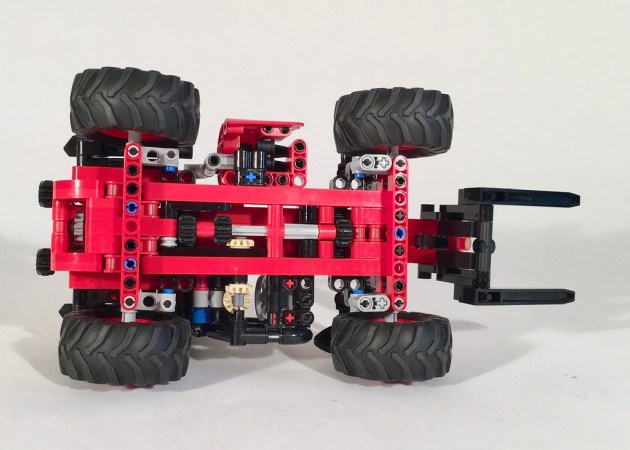 The engine tubs were a lot of fun and took less time than I thought they would. There are two tubs. The first, is built to support the front independent suspension and two different engine designs. The Straight Six is my favorite engine, so I wanted to make this options possible. The steering race for this module is placed far forward to allow for the I-6 to fit. In fact, the front of the engine is two studs from the front of the car. The V-8 fits well, and is placed behind the front axle centerline. The second engine tub features a fixed Flat 6 engine, and two fake electric motors; one for each side of the front axle. This unit is the hybrid and All Wheel Drive engine tub. Each tub attaches to either transmission module with six pins and one axle for steering. Drive connects by a 8 tooth gear off the engine.